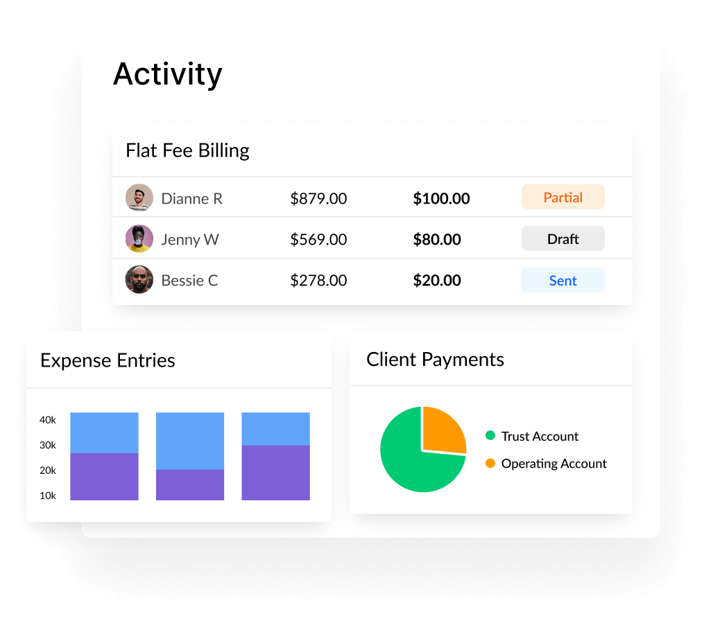 Maximize your revenue with our advanced time-tracking tools and robust billing features that are built to help you scale your firm. We make it easy for you to know what’s due, when it’s due, and what’s paid.