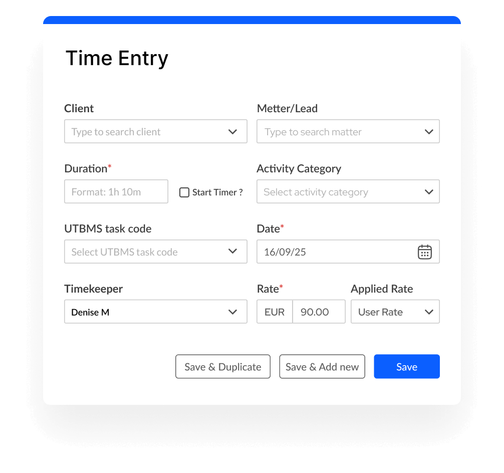 Enable UTBMS codes for time and expense entries. Generate LEDES-compliant invoices effortlessly, ensuring accuracy, transparency, and compliance with client billing guidelines.